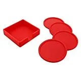 4pcs Drink Coasters Cup Mat Silicone Pad Tabletop Protect Mug Accessory (Color – Red)