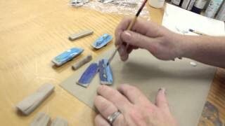 JFlo paints on small pieces of driftwood and then turns it into a magnet.