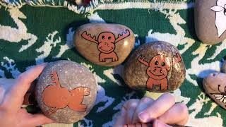 Moose painted rock tutorial with paint pens. This is a beginner easy idea! This is created with posca paint pens and a rock! First a thin black paint pen is used to do the outline and then the brown for the moose, you can make your moose any color you want too! Last is the face the outline and any final touch ups before sealing and hiding your painted rock!