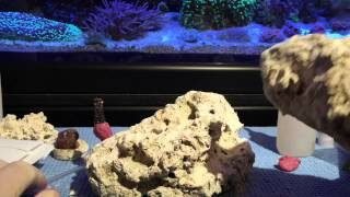 When aquascaping a new tank, pre-drilling 1/4″ holes in the the rockwork will provide places to put pegged corals as desired. Drill shelf rock or bigger rocks as you rockscape — it’ll be very handy later when you add more and more frags.