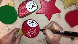 Paint Pen and acrylic painted wood Christmas ornaments beginner easy tutorial