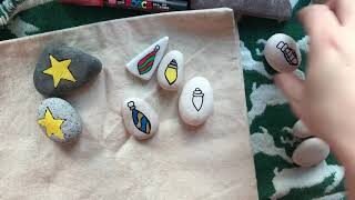 Painted rock using paint pen. Christmas decorations ornaments is an easy beginner video. There are several different designs. These are perfect for the holiday hiding season!