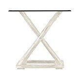 Treasure may not lie below the Driftwood Flats End Table, but X certainly does mark the spot on this eye-catching piece. The row of seven X’s are topped with glass to make the table visually arresting from any angle. Contemporary in design, but crafted with almost-rustic looking materials, the Driftwood Flats End Table is a bridge between simplicity and sophistication.